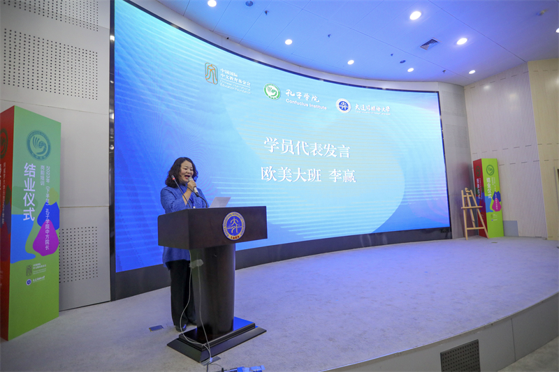 来自欧美大班的李赢和亚非班的王海森分别代表参训院长发言,他们对中国国际中文教育基金会提供的宝贵机会,对大外组织培训的高度重视、周到安排,对授课专家的倾囊相授表示感谢。他们表示,宝贵的两周培训,不仅让拟赴任院长学习到必备的知识技能、拓宽了国际视野,更重要的是深刻认识到推广中国语言、传播中国文化的重大意义,深刻认识到中方院长不仅是一名教育工作者,更是文化传播行者,友好往来使者。他们将讲好中国故事,为促进中国与世界的文化交流铺路架桥。