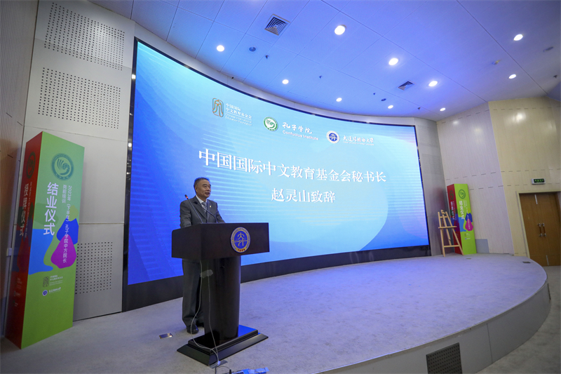 赵灵山秘书长在致辞中代表中国国际中文教育基金会向圆满完成本次培训任务、即将奔赴孔子学院一线工作的49位院长表示祝贺。他指出,孔子学院作为推动中外人文交流,增进国际理解的平台,是我国教育国际合作的重要组成部分,至今已走过了19个春秋。希望各位院长能够始终秉持奉献精神,坚守底线思维,抱持团结意识,主动协助各方,积极拓展资源,为建设优秀示范孔院、为孔院大家庭添砖加瓦而不懈奋斗;基金会也将始终与各位院长、中外方合作院校并肩携手、凝聚共识,为持续推动孔子学院事业升级发展,促进中外教育国际合作发挥更大作用。