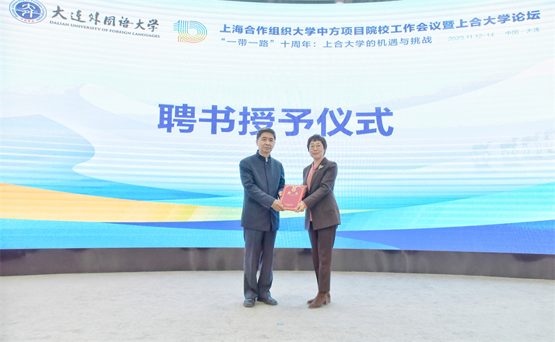 随后,刘宏校长与教育部、辽宁省教育厅领导和专家学者共同启动上合学院成立仪式,与上海合作组织大学中方项目院校共同见证上合学院的成立,并聘请李永全教授为上合学院特别顾问。
