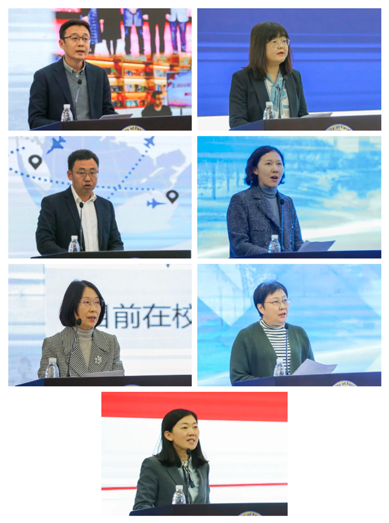 日本语学院院长于飞、英语学院院长吕春媚、俄语学院副院长王钢、韩国语学院院长李民、高级翻译学院院长李春姬、汉学院院长陈子骄、马克思主义学院副院长董杨作为培养单位代表作研究生导师队伍建设及人才培养经验分享。