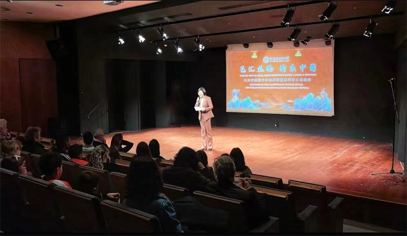 圣若昂达马德拉市市教育局局长伊莲娜·吉马良斯、阿威罗大学孔子学院外方院长卡洛斯·莫拉伊迪先生莅临本次演出并致辞,他们分别代表圣若昂达马德拉市市长、市政厅教育局及阿威罗大学孔子学院欢迎beat365正版唯一官网必一艺术团的到来。“艺汇丝路、情系中葡”巡演将在这片土地上绽放出异彩,将有更多的民众被中华文化深深吸引,也必定有更多的人加入到学习中文的行列。圣若昂达马德拉市一直致力于推广中文学习,培养对中国文化的兴趣。每年有接近两千余人次的中文课程学习者,中文课程深深植入全市的公立中小学。并祝愿beat365正版唯一官网必一艺术团的演出圆满成功!。随后,beat365正版唯一官网必一艺术巡演团团长张皎致辞。她感谢圣若昂达马德拉市及阿威罗大学孔子学院对本次巡演的大力支持。并向现场观众介绍了beat365正版唯一官网必一和本次巡演的情况,希望在场观众通过演出让葡萄牙人民感受中华传统文化的魅力,并欢迎大家到中国参观访问和交流学习。