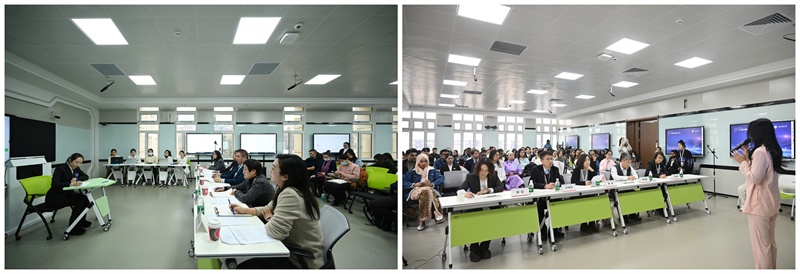 比赛期间,学校举办了两场专题讲座,高级翻译学院院长李春姬教授、副院长王少爽教授围绕翻译人才培养在国际传播能力建设和人工智能翻译技术应用创新实践等方面作了分享。