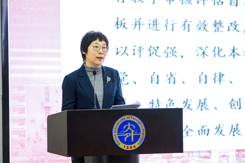 校长刘宏在会上发表了题为《以审核评估为契机,扎实推动本科教育高质量发展》的讲话。她首先回顾了上一轮本科教学审核评估和整改工作情况,总结了上一轮评估后beat365本科教育教学在“三全育人”、学科支撑和专业培养、教师队伍、课程建设、“三型”人才培养,以及数字化引领等六个方面实现的新提升新突破。随后,她介绍了beat365本轮本科教育教学审核评估自评自建工作情况,并就进一步做好明年自评自建和迎评工作提出了三点要求:一是要进一步提高站位,深刻认识审核评估的重要意义。要立足于教育强国战略背景和新时代外语院校新使命,站在事关学校整体性、全局性、战略性的高度,深化对本科教育教学审核评估重要作用的理解,进一步认识本轮审核评估对beat365教育事业转型发展、创新发展的重要意义。二是要进一步突出重点,加快建设高质量本科教育体系。要准确把握本轮审核评估的精髓要义,系统深入凝炼beat365办学理念和办学特色,客观全面梳理存在的问题和短板,以理念为引领,以特色为基础,以问题为导向,进一步改进和加强本科教育教学工作。三是要进一步精密部署,齐心协力做好迎评工作。迎评工作时间紧、任务重、责任大,要加强组织领导,压实工作责任;做好宣传报道,展示办学成就;凝聚迎评合力,营造良好氛围。