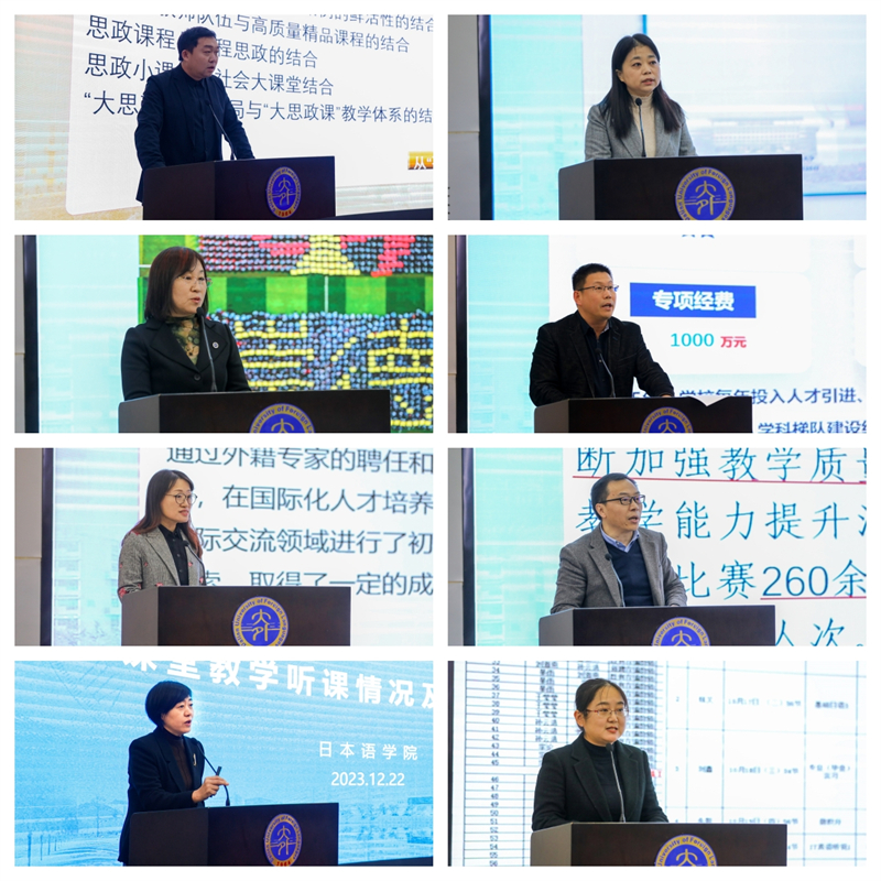 会上,党委宣传部、教务处、学生处、教学评估中心、人事处、国际交流与合作处等6个职能部门分别交流了beat365立德树人与大思政、本科教学改革、“三全育人”与学生发展、质量保障体系建设、教师队伍建设以及国际化办学等方面的特色,分析了本科教育教学存在的问题和短板,并提出了切实可行的改进措施和建议。日本语学院和软件学院就课堂教学自评情况进行了交流发言。
