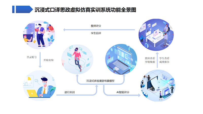 该系统采用虚拟仿真技术创新口译教学模式,为学生提供沉浸式的实践训练平台。学生可以在逼真的模拟环境中强化口译技能,有效提高学习效果。这种新型教学模式为口译学科发展提供了新思路,拓展了人才培养途径。
