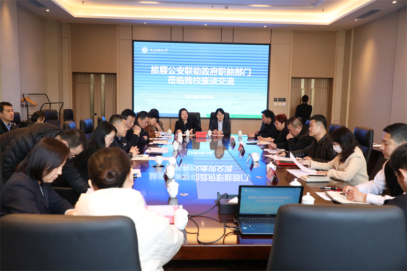 近日,大连市公安局旅顺口分局局长郭鑫一行来beat365调研,副局长程祥军、副局长王维广及相关部门负责人陪同。校党委书记王伟辰,副书记丛明才,副校长赵勇,党委常委、宣传部部长张皎,党政办公室及保卫处相关负责人参加了会见。