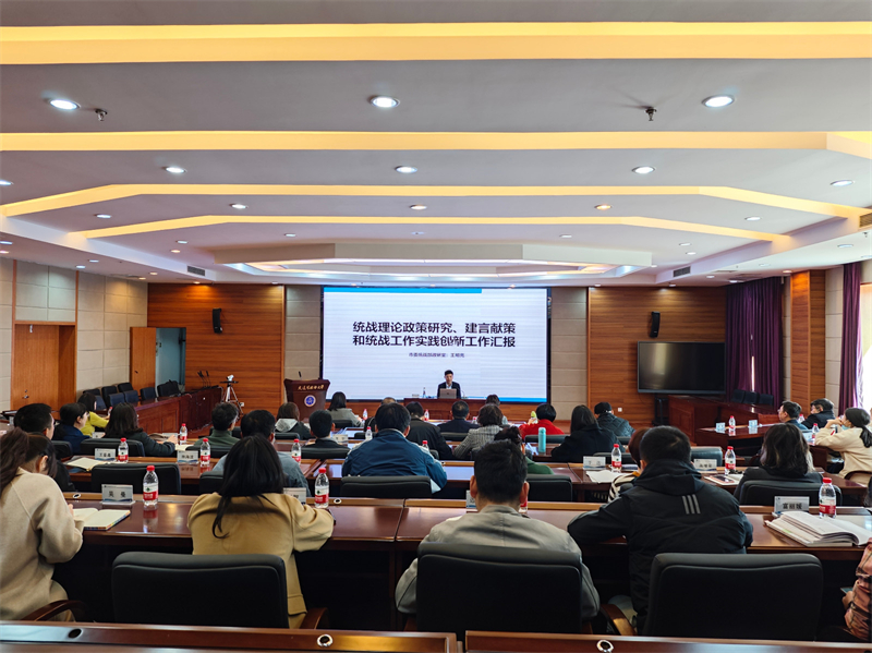 王明亮主任对统战理论研究、实践创新和建言献策工作进行系统介绍,深度解读统一战线工作的强大法宝作用和理论研究、实践创新项目、建言献策的选题、撰写及报送渠道。培训会以统战理论为切入点,对习近平总书记关于做好新时代党的统一战线工作的重要思想进行阐述;以统战理论研究工作为抓手,提出着眼理论创新、着眼重点领域、着眼解决问题、着眼熟悉领域的选题撰写要求;以建言献策为依托,鼓励统战成员发挥专业优势作用,围绕社会热点、关注焦点、发展难点和工作堵点提出有针对性的意见建议,建良言、献良策,解决实际问题;以实践创新为推动力,数字化分析获奖成果及趋势,指出要“快、奇、新、好”落实上级统战工作部署,结合学校实际形成特色品牌。
