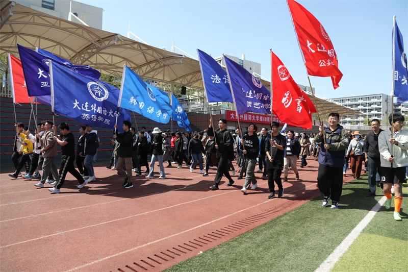 四月的大外惠风和畅,春意满怀。各分工会排着整齐的队伍,鲜艳的队旗迎风飘扬。在热烈的气氛中,校党委副书记丛明才打响了徒步活动的发令枪,宣布徒步活动开始。伴随着欢快的音乐,迎着和煦的阳光,教职工们带着对学校发展成就的自豪和欣慰,带着对学校美好明天的期冀与祝福整装出发,阔步前行。绿草如茵,玉兰飘香,大家满怀热情,一路欢声笑语,沿着校园内的风景线路,欣赏着春日的美景,感受着运动带来的快乐。