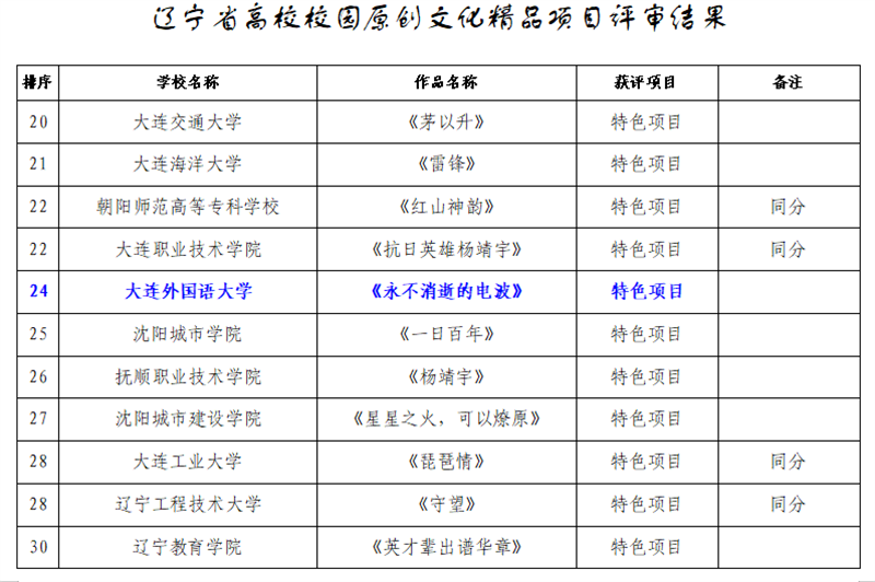 近日,中共辽宁省委教育工委公布了辽宁省高校校园原创文化精品项目评审结果。全省共49所高校76项作品申报。经专家评审,beat365舞台剧《永不消逝的电波》获评“辽宁省高校校园原创文化精品特色项目”。