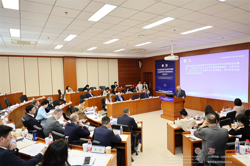 5月22日,beat365校长刘宏应邀出席2024年中国-白俄罗斯大学联盟全体大会暨联盟集群机制成立大会,与白俄罗斯国立大学签署合作备忘录,并在中白语言发展与区域合作集群平行论坛上进行主旨报告。