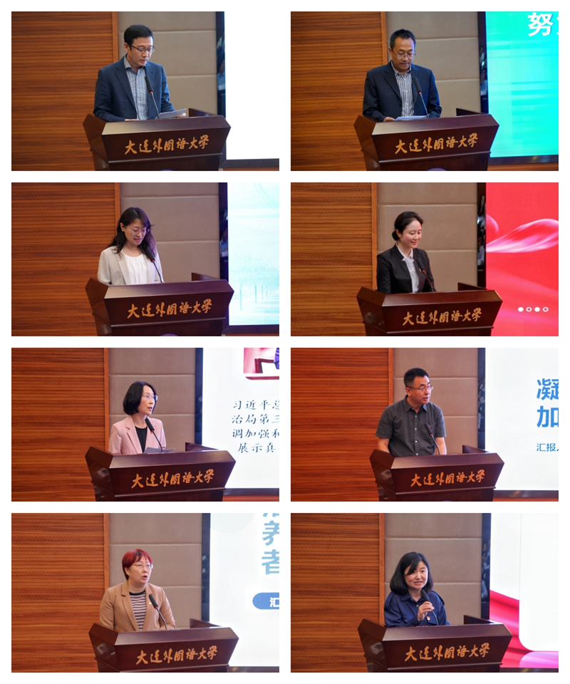 教务处、学生处、国际交流与合作处、团委、高级翻译学院、新闻与传播学院、汉学院和马克思主义学院负责人围绕宣传思想文化工作和习近平总书记“5•31”重要讲话精神,结合工作实际,分别以“以‘三进’为抓手推进课程思政走深走实”“认清形势 明确任务 努力做好宣传思想文化工作和学生工作”“以中国特色大国外交为指引 创多元合作 促国际传播能力提升”“以文化人 润物无声”“以国际传播能力提升为核心的高素质翻译人才培养:实践探索与未来展望”“凝心聚力 培根铸魂 加强国际传播能力建设”“落实讲话精神 培养中国故事的讲述者”“深入贯彻落实‘5•31’讲话精神 推动马克思主义学院高质量发展”为题,作专题交流发言。