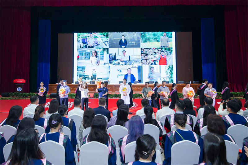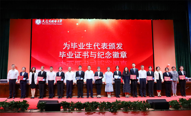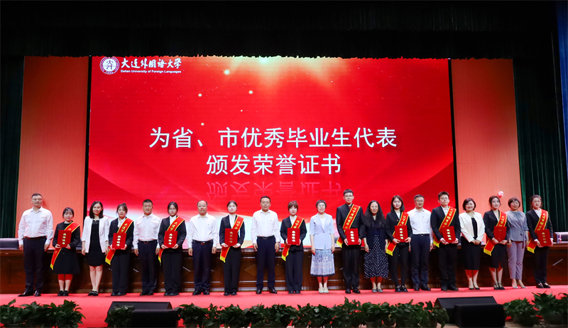 毕业生代表本科生毕业生李昊霖回忆了在大外学习生活的四年,分享了在软件学院和同窗们成长的历程,表达了对母校的感激之情;研究生毕业生万欣芮回顾了在大外取得的成长与进步,对学校的悉心栽培表达了诚挚的感谢;博士生毕业生李鹤鸣讲述了自己和大外的深厚缘分,号召毕业生们怀揣对母校培育的感激之情,在未来的道路上越走越远;塔吉克斯坦留学生张杰分享了在中国的求学经历,在这里,他深深地被中国文化所吸引,感受到了中国力量。