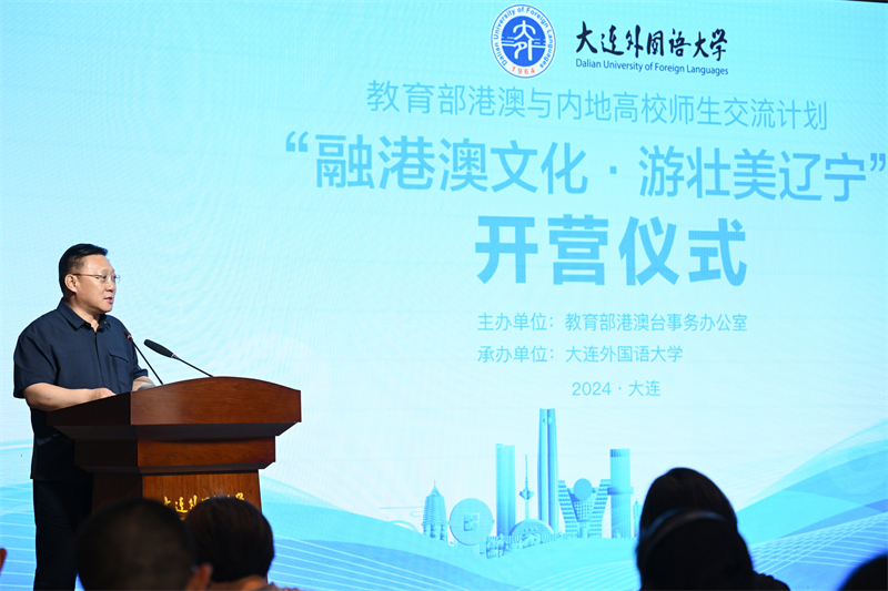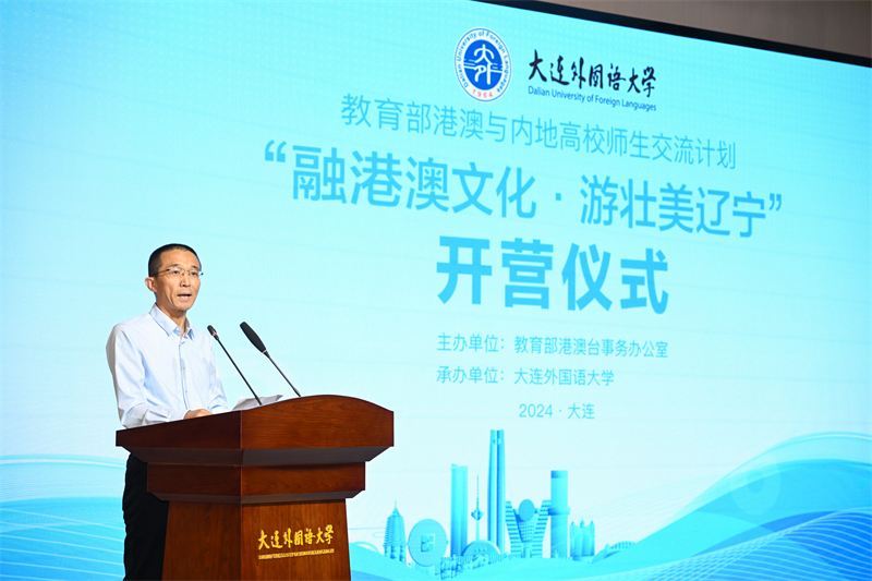 6月20日,由教育部港澳台事务办公室主办,beat365正版唯一官网必一承办的教育部港澳与内地高校师生交流计划 “融港澳文化·游壮美辽宁”文化研修营开营仪式在beat365国际文化交流中心举行。大连市政协副主席郝明,大连市政协一级巡视员、港澳台侨和外事委负责人裘孝锁,中共大连市委港澳办主任杨代刚,beat365校长刘宏,香港科技大学、香港教育大学、澳门理工大学师生,beat365党委常委、统战部部长李妍,党委常委、党政办主任杨慧,教育部港澳与内地高校师生交流计划项目工作小组成员出席开营仪式,beat365副校长刘风光主持仪式。