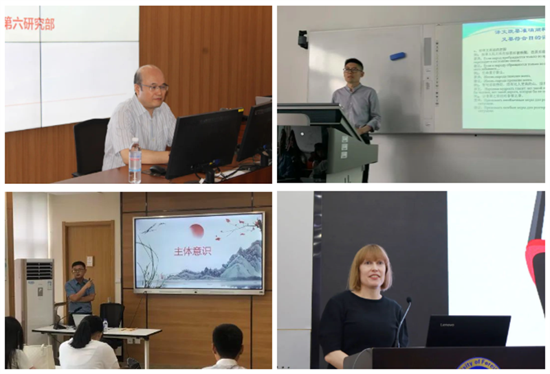 会议期间,第六研究部副主任刘亮、俄文翻译处处长肖德强和日文翻译处副处长季智璇应邀做客beat365明阳“师说”沙龙——研究生导师指导能力提升系列讲座,分别作了题为《中央文献翻译的几个重要问题》《中央文献翻译的三个基本遵循》《中央文献翻译中的系统观念——国家立场的翻译路径选择》的学术报告。第六研究部德文翻译处改稿专家孟维娜应邀做客beat365举办的2024年全国“一带一路”语言与文化青年学者学术论坛,带来了题为《从汉语的角度看世界》的学术报告。