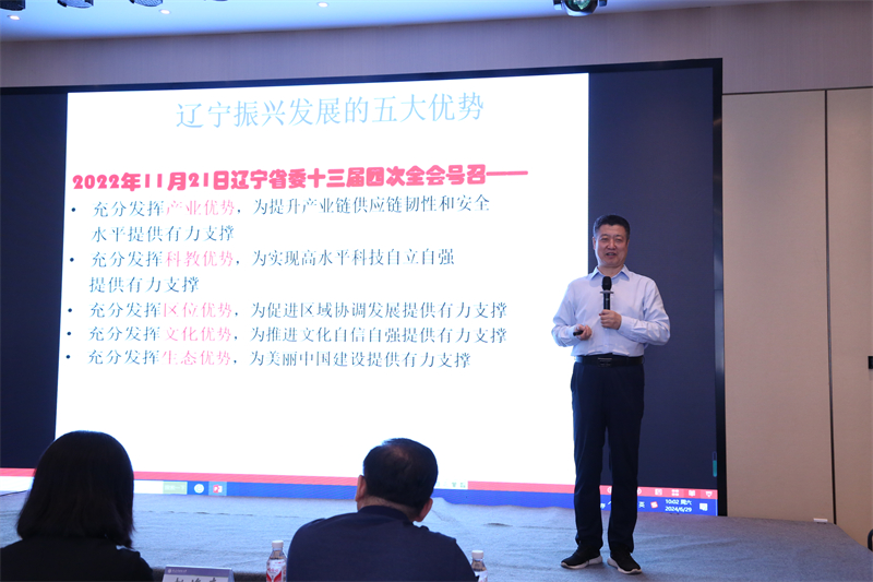 会议邀请了辽宁大学梁启东教授、省委党校王行伟教授作主旨报告。梁启东教授以《辽宁振兴发展的机遇在哪里?——关于讲好大学思政课的几点思考》为题,系统阐释了辽宁振兴发展的产业优势、科教优势、区位优势、文化优势和生态优势,论述了推进中国式现代化背景下东北的重要战略地位,分析了辽宁全面振兴的发展态势。王行伟教授以《打造新时代“六地”谱写全面振兴新篇章》为题,紧密结合辽宁省打造新时代“六地”的目标定位,围绕强国建设、民族复兴的重要任务,阐释了辽宁全面振兴取得新突破的实践路径,论述了辽宁高质量发展和构建新发展格局的战略对策。
