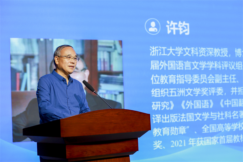 浙江大学文科资深教授许钧探讨了新时期学科建设应该关注的六种关系:一是处理好专业建设和学科建设的关系,他强调了青年人才培养对未来学科发展的重要性,高度认可大外提出的学科专业群概念,认为是破解当下专业建设和学科建设之间矛盾的重要举措。二是处理好服务国家战略和学术自主创新的关系,强调应该在学科逻辑理论创新基础上服务国家需求。三是处理好有组织科研和兴趣驱动研究的关系,进行自下而上、有兴趣驱动的有组织科研。四是处理好主流学科方向和特色学科方向的关系。五是处理好社会影响和学术共同体内部影响的关系,强调在当今时代应该更注重学术共同体的建设和影响。六是处理好国内发展和国际拓展的关系,外语教育对国际一流大学和学科建设,推进高水平教育对外开放和国际交流合作具有重要作用。七是处理好引进与内部培养的关系,对于年轻人才的成长来说内部培养更重要。
