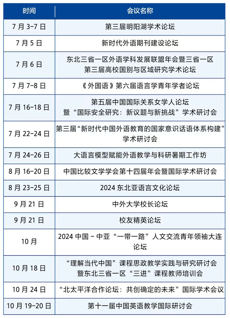 为迎接学校60周年校庆,学校国家语委科研机构中国东北亚语言研究中心、上合组织大学中方校长办公室、辽宁省新文科数字人文创新实验室联合学科发展规划处、科研处、学术期刊管理中心、党政办公室、国际交流与合作处、孔子学院工作处等部门以及英语学院、国际关系学院等二级学院精心筹划了15场高端学术论坛。