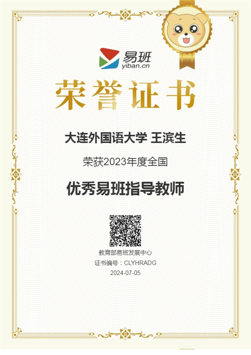 近日,教育部易班发展中心公布2023年度全国易班共建优秀名单。beat365党委学生工作部大学生网络思想政治教育中心主任王滨生老师获评“全国优秀易班指导教师”。