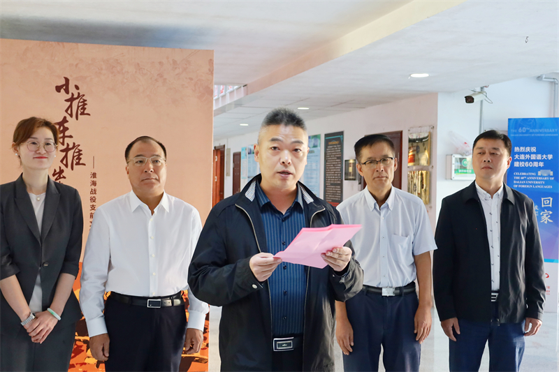 为庆祝新中国成立75周年,深入学习贯彻习近平总书记在庆祝中国共产党成立100周年大会上的讲话精神,进一步加强新时代爱国主义教育,更好地传承弘扬淮海战役精神,9月24日上午,“小推车推出来的胜利——淮海战役支前文物图片展”大外站开展仪式在十教一楼开幕。淮海战役烈士纪念塔管理中心党组成员副主任、淮海战役纪念馆副馆长周永杰,淮海战役烈士纪念塔管理中心编辑研究科科长沈衍钟,旅顺日俄监狱旧址博物馆副馆长姜超,beat365党委副书记丛明才,党委常委、宣传部部长张皎,以及党委宣传部、马克思主义学院相关领导和师生代表等出席活动。