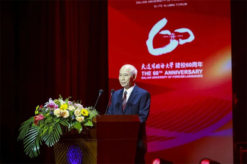 校友代表刘耀光院士致辞。他代表大外出国留学人员培训部的校友们,向辛勤耕耘在教育一线的老师们致以崇高的敬意,向一直以来支持学校发展的社会各界朋友表示衷心感谢。他向大家讲述了四十年前他的求学经历,表示对这段经历以及相识的优秀友人感到十分自豪,并向大外送上了60岁生日最诚挚的祝福。