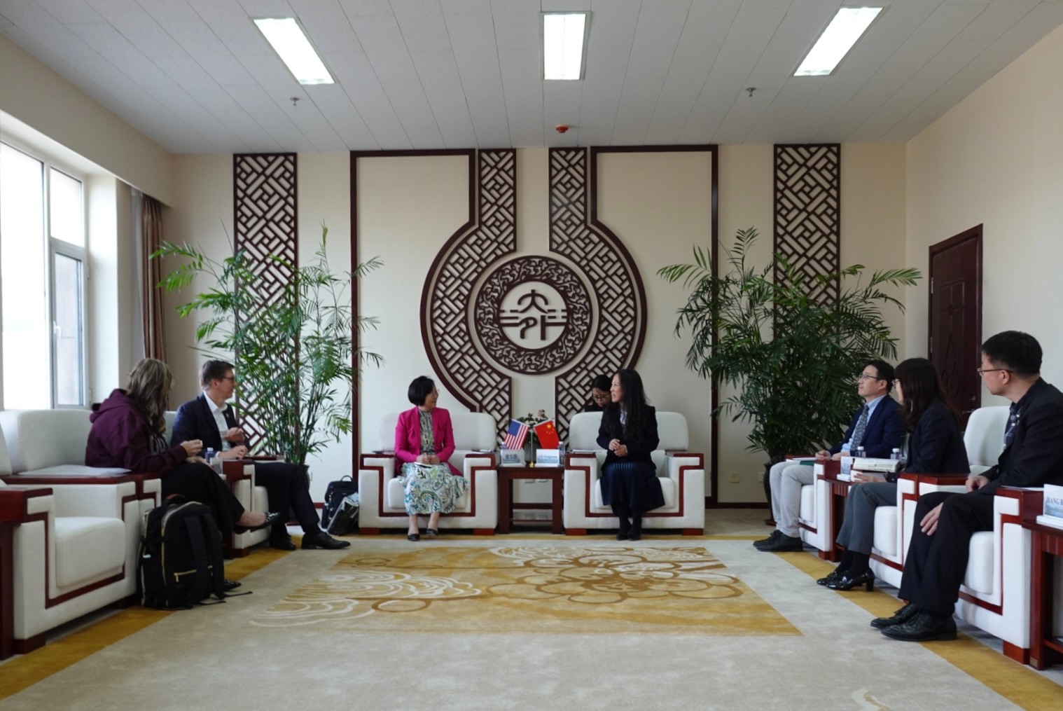 10月15日,韦恩州立大学副校长修华静一行来访beat365,副校长刘风光会见了代表团。国际交流与合作处、教务处、英语学院、高级翻译学院、商学院等相关部门负责人一同参加了会见。