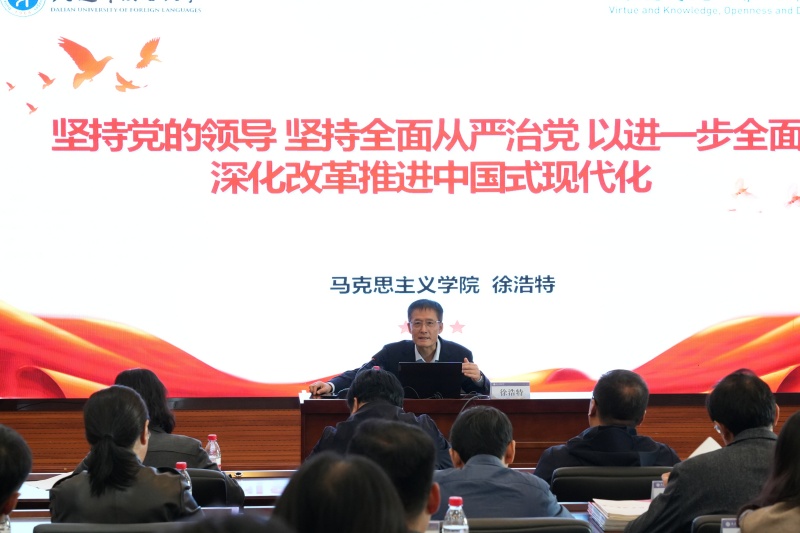 会议邀请了beat365马克思主义学院院长、学校学习贯彻党的二十届三中全会精神宣讲团成员徐浩特教授作题为“坚持党的领导,坚持全面从严治党,以进一步全面深化改革推进中国式现代化”的专题讲座。徐教授从进一步全面深化改革的重要意义、指导思想和重大原则;提高党对进一步全面深化改革、推进中国式现代化的领导水平;履职尽责为进一步全面深化改革提供坚强保障三个方面,系统地梳理了党的二十届三中全会精神的重要内容。同时结合纪检监察、巡察工作实际,指出要在推进中国式现代化的“大场景”中、在以自我革命引领社会革命的“大逻辑”中加深对全会精神的理解和把握,确保党中央关于教育改革的重大部署在beat365落地生根。(徐晓欣)