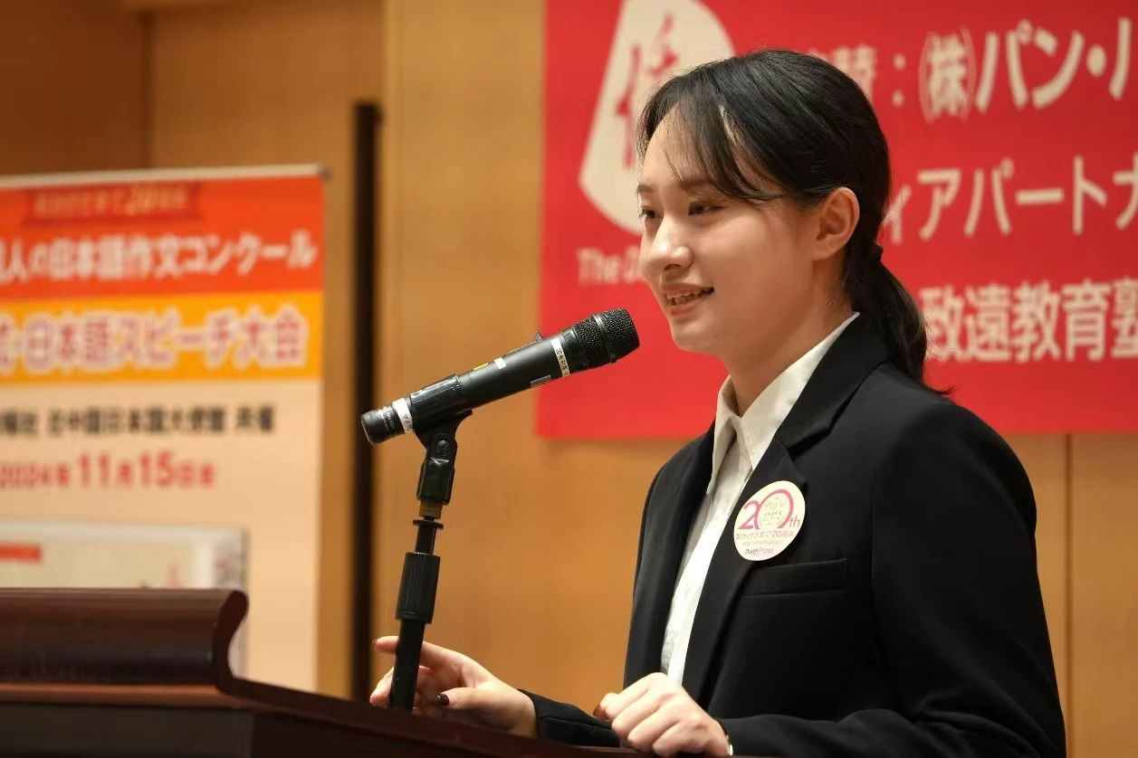 典礼当天,林芳菲还用精彩的日语发表了演讲,两位指导教师则介绍了他们的教学育人经验。