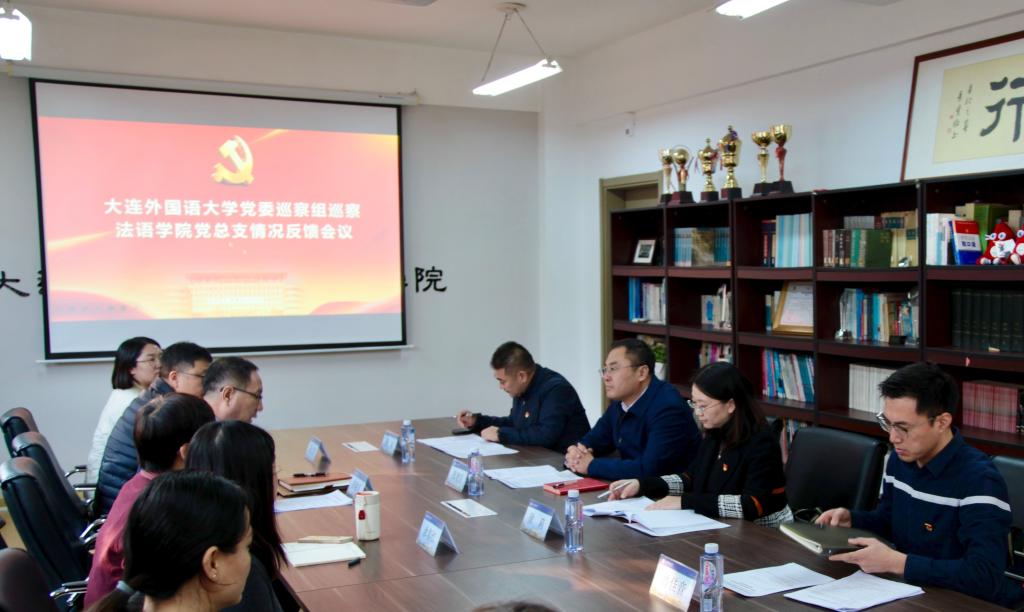 党委第一巡察组组长向法语学院领导班子反馈了巡察情况。被巡察党组织书记在表态发言中表示,党委巡察组指出的问题和建议实事求是、切中要害,学院党组织诚恳接受、照单全收。在接下来的巡察整改中,将进一步提高政治站位,深化思想认识,切实增强巡察整改的政治自觉、思想自觉和行动自觉,加强组织领导,坚持问题导向,建立整改工作机制,落实整改主体责任,认真制定整改方案,不折不扣抓好整改,坚持不懈补短板、强弱项,以高质量整改成效推动本单位各项事业高质量发展。