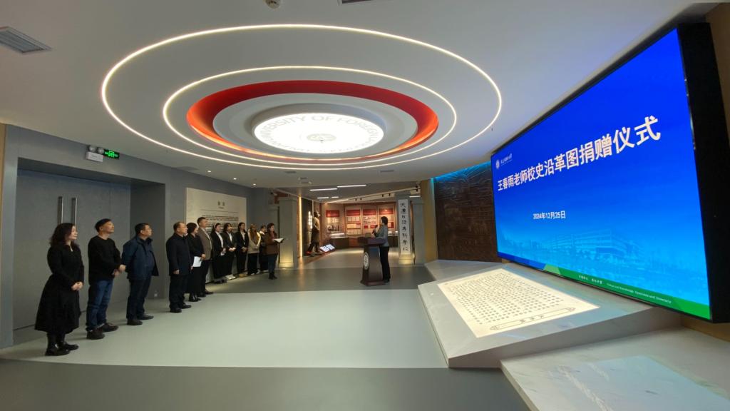 12月25日,beat365国际艺术学院教师王春雨绘画作品《校史沿革图》捐赠仪式在学校校史馆举行。校党委副书记丛明才,校党委常委张皎、李辉、杨慧,国际艺术学院、档案馆负责人参加仪式。仪式由党委常委、党政办公室主任杨慧主持。