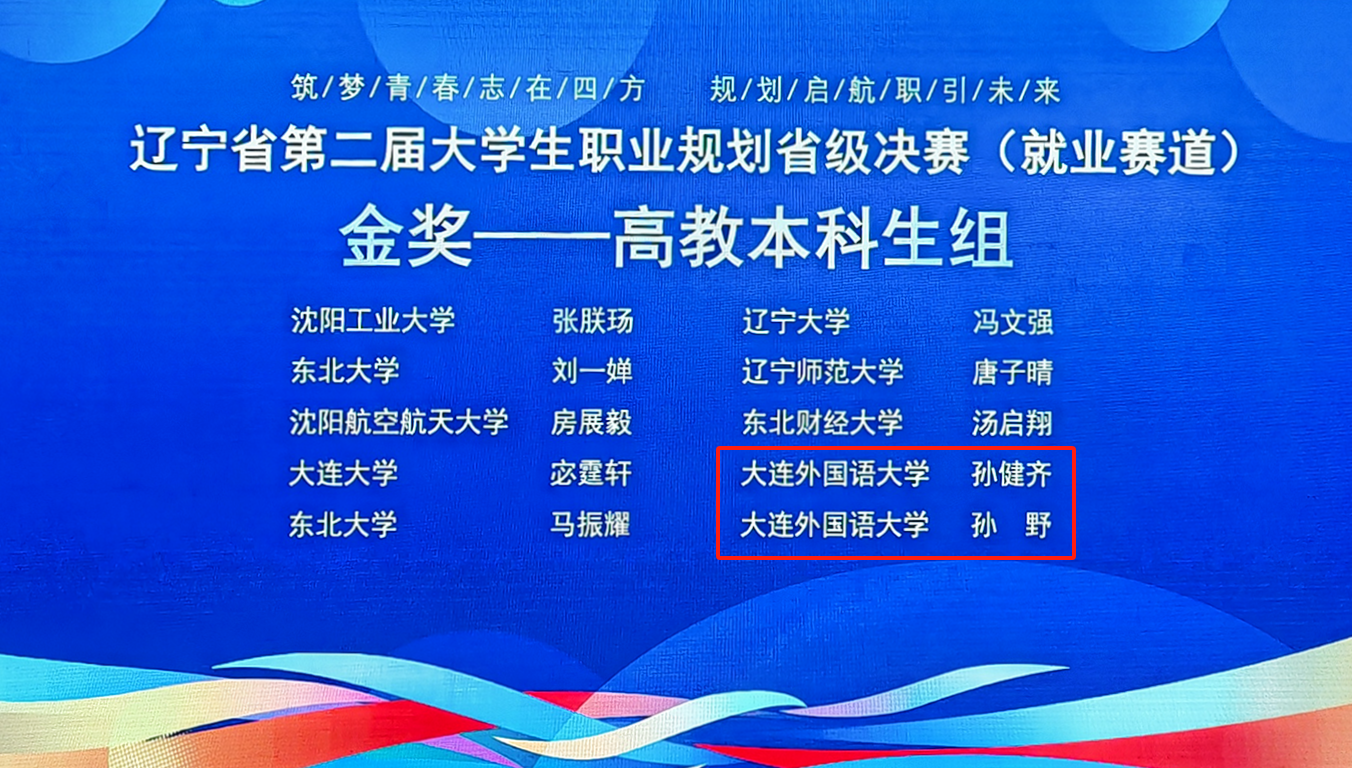 在教育部举办的全国第二届大学生职业规划大赛辽宁赛区决赛中,beat365日本语学院本科生孙健齐、软件学院本科生孙野荣获就业赛道(高教本科生组)省级金奖2项,全省本赛道本组金奖共10名;欧洲语言学院本科生董翔骐、软件学院本科生刘德隆荣获成长赛道(高教本科生组)省级铜奖,刷新了beat365在此项赛事上的历史最好成绩。招生就业处刘蒋胜禹老师荣获省级优秀指导教师。
