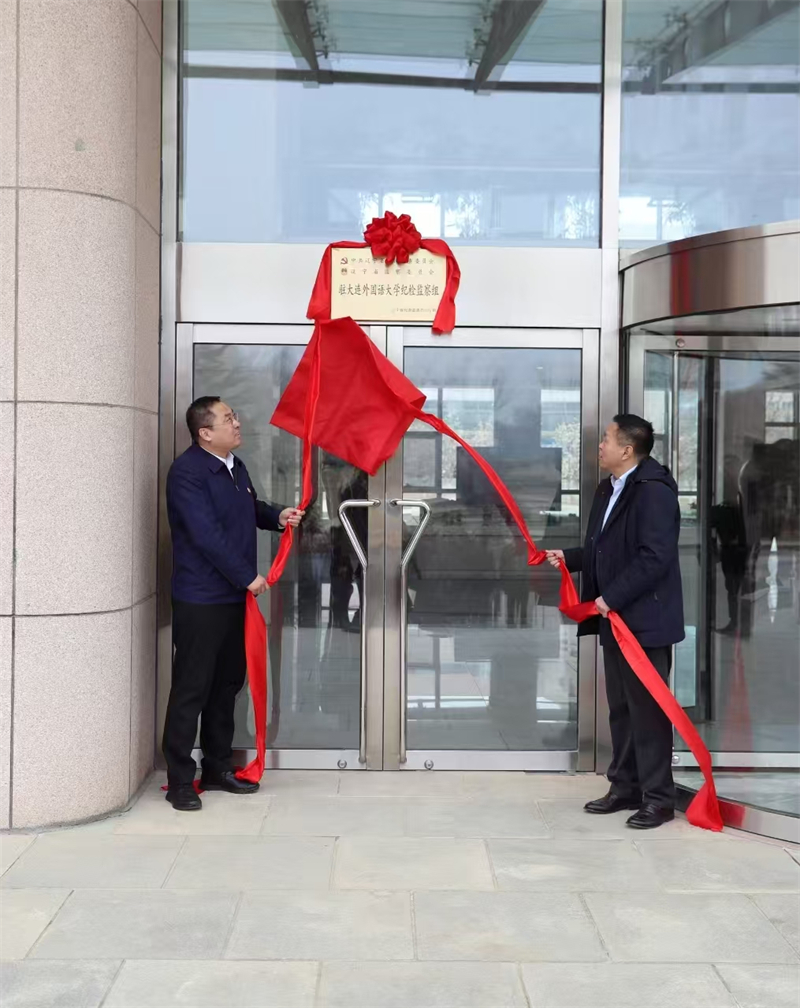 4月9日,辽宁省纪委监委驻beat365正版唯一官网必一纪检监察组正式揭牌。学校党委书记王伟辰与驻校纪检监察组组长、纪委书记张晓臣共同为驻校纪检监察组揭牌。学校领导、党委委员、纪委委员,各单位、各部门负责人、全校专兼职纪检监察干部参加揭牌仪式。驻校纪检监察组副组长、纪委副书记李殿峰主持揭牌仪式。