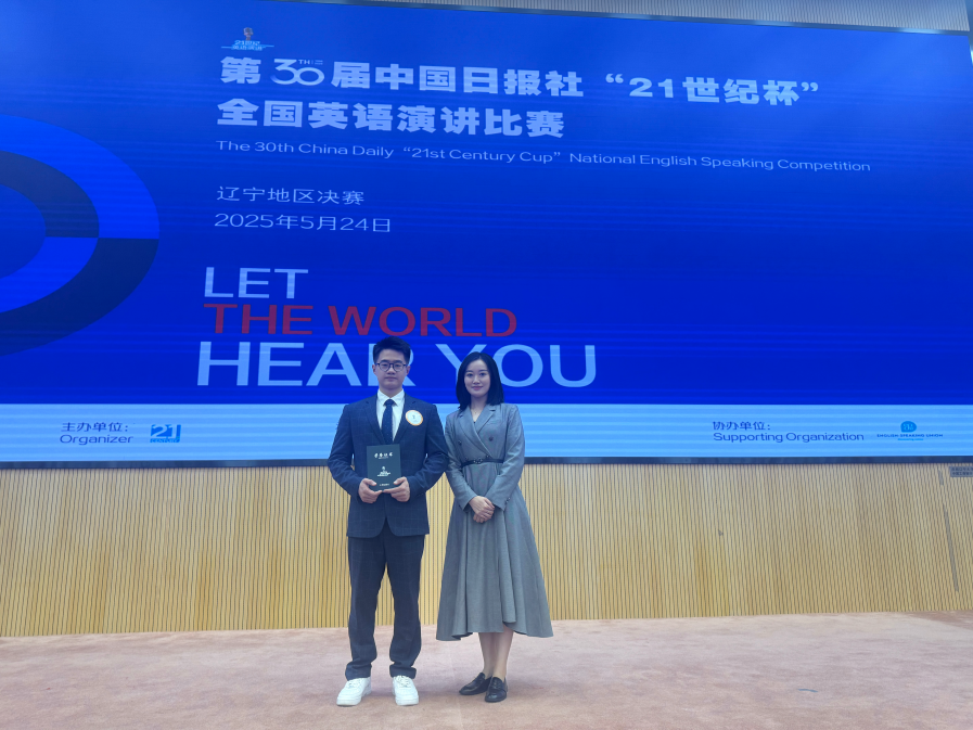 5月24日,beat365英语学院2022级学生彭力仁在第30届中国日报社“21世纪杯”全国英语演讲比赛辽宁省决赛中荣获一等奖,成功晋级国赛。
