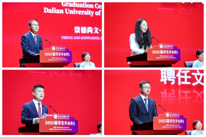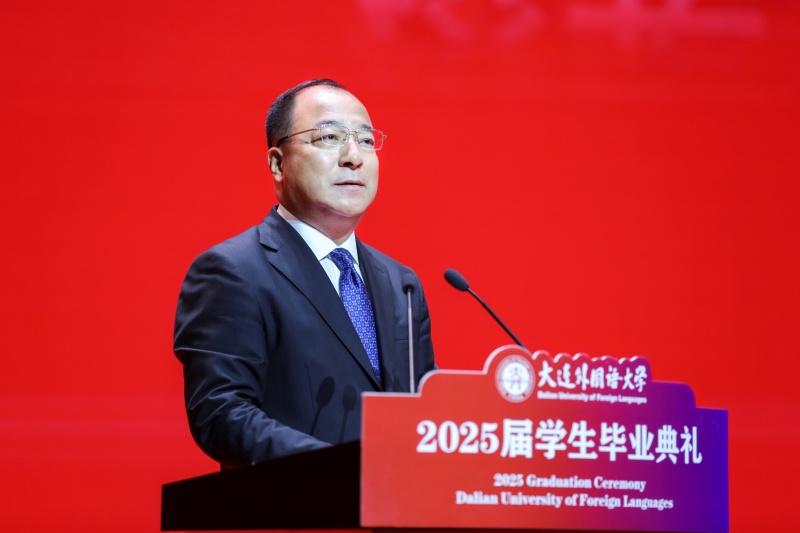 校长丛明才教授发表了题为《向下扎根、向上生长、向内蓄势,做堪当民族复兴大任的时代新人》的毕业致辞。他向全体2025届毕业生致以最热烈的祝贺,并以三个维度寄语即将踏上新征程的学子:一要向下扎根,心怀家国,做担当有为的奋进者,永葆爱国赤子初心,传承大外优秀传统,争做有家国情怀、国际视野等的高素质人才;二要向上生长,投身强国建设,做创新驱动的奉献者,永葆学习之心,勇立创新潮头,成为新质生产力的创造者;三要向内蓄势,做热爱生活的进取者,在社会大课堂中经历困难挫败后依然热爱生活,不骄不躁,把生活过成自己心中最喜欢最满意的模样。