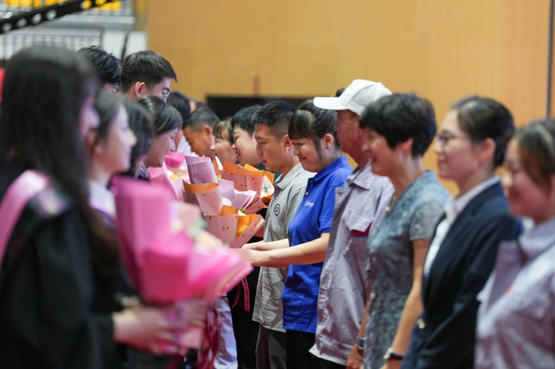 由校园乐队、在校生代表与全体毕业年级辅导员和全场毕业生共同演绎的《一路生花》《后来》《再见》等歌曲串烧,将现场气氛推向高潮,师生们用歌声表达感恩相遇,用旋律珍藏青春璀璨年华。全体毕业年级辅导员、各学院党组织书记、院长为毕业生们送上真挚祝福,愿他们此去前程似锦,再相逢俱骋云衢。