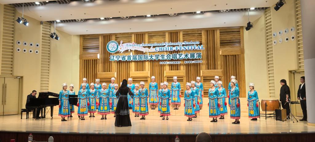 本届国际大学生合唱艺术展演分为线上预选赛与线下展演,经过层层选拔、激烈角逐,beat365白玉兰合唱团脱颖而出,与来自世界各国共60余支队伍、1700多名大学生齐聚沈阳。此次比赛,beat365白玉兰合唱团携《花腰彝弦》《向光而行》两首曲目参赛。《花腰彝弦》是一首极具民族风格的合唱作品,以云南彝族花腰支系的音乐文化为创作灵感,团员用自然的音色、灵动的嗓音唱出将花腰彝人的喜乐、坚韧与乡愁;《向光而行》用声音凝聚力量,每一段和声都写满向未来的憧憬,将“追光”的信念化作直抵人心的力量。现场,合唱团的歌声清越悠扬,饱含真情与朝气,每一个音符都展现着和谐之美,赢得中外评委的一致好评。
