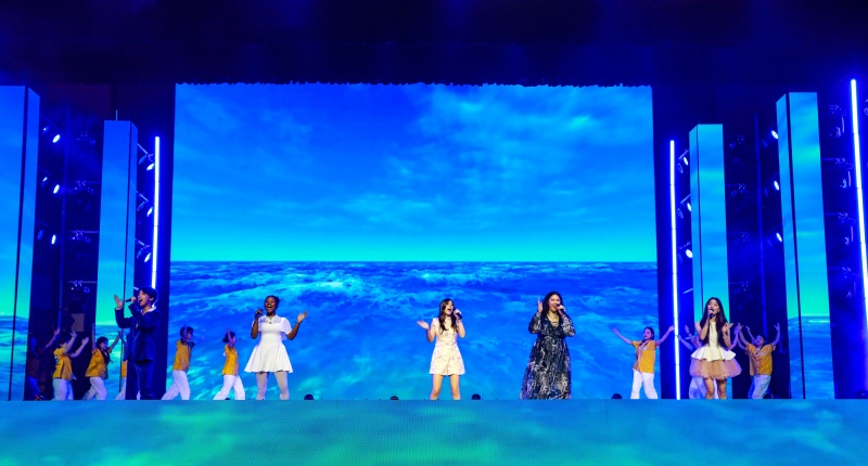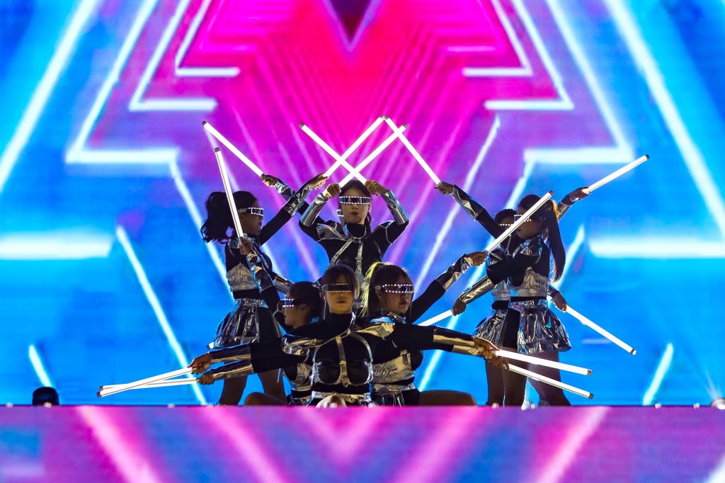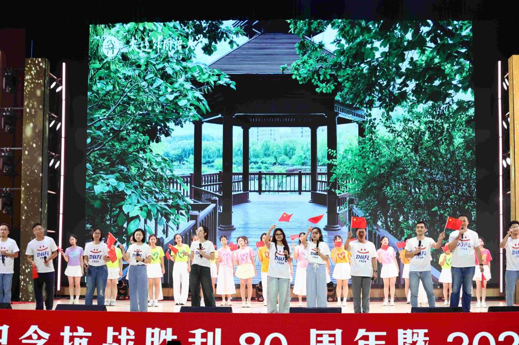 晚会现场,近4000名师生共同托起一面长30米,宽20米的巨幅国旗进行传递,全场齐唱《歌唱祖国》,大外学子以青春之名致敬伟大时代,共同祝福祖国母亲76岁生日快乐!炽烈的爱国火焰在上空熊熊燃烧,照亮了2025级新同学奔赴星辰大海的崭新航程。