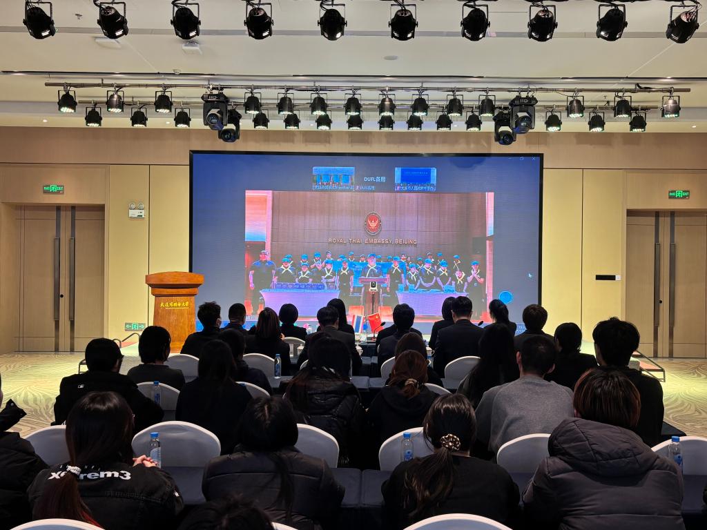 韩灿才大使介绍,此次活动旨在促进中泰语言文学与文化互鉴,为学子研习泰语、了解泰国文化提供优质资源,期待能激发学子对泰语及泰国文化的探索热情。他表示,使馆将持续推动泰中高校教育文化合作,深化两国传统友谊。