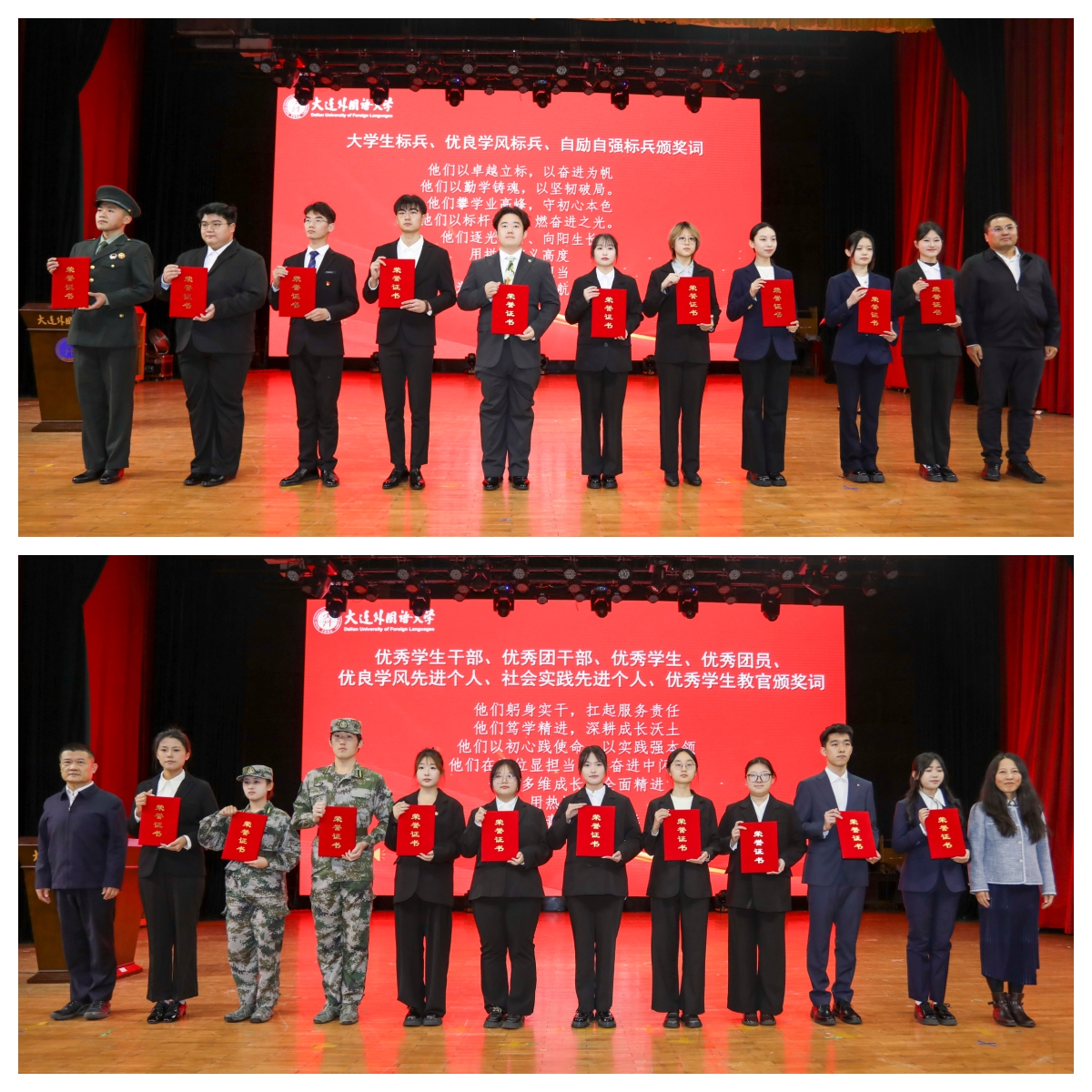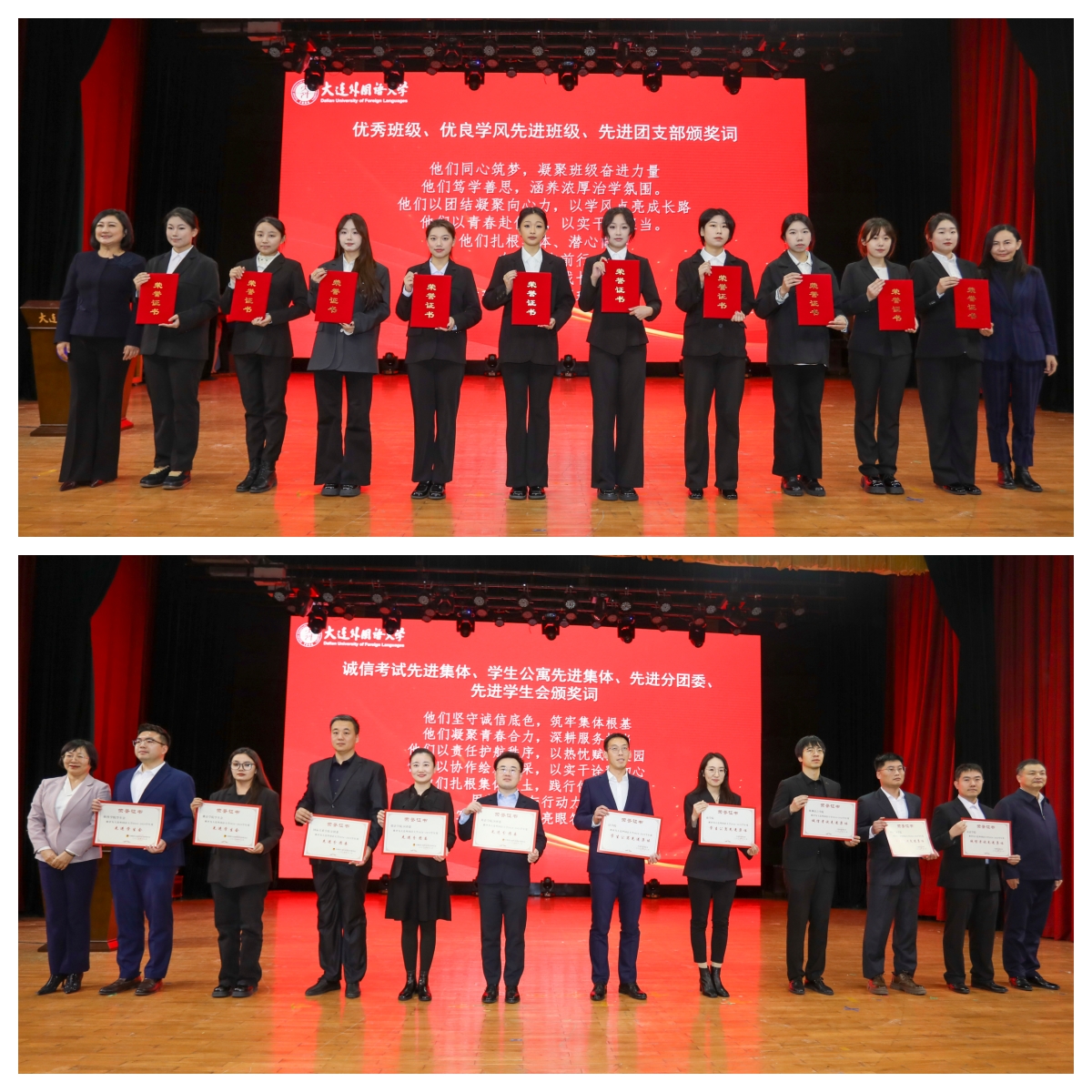12月17日下午,2024-2025学年度学生先进集体、先进个人表彰大会在启航楼礼堂举行。学校党委班子成员、各职能部门负责人、各学院党政领导、全体辅导员、学生代表以及部分社会类奖学金资助方参加了大会。