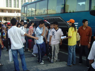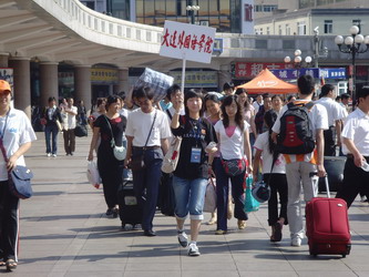 为了方便新生入学,学院分别在大连火车站和旅顺新校区设立了两个新生接待处。第一批志愿者于清晨5点准时到达火车站。根据接站工作安排,志愿者们分成站内引导、站口迎接、组织等候、校车向导等若干组。期间,他们为新生及家长提供了耐心、周到、细致的服务。