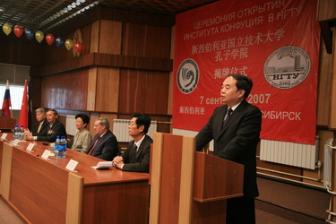 新西伯利亚技术大学第一副校长拉斯塔尔古耶夫在讲话中强调了孔子学院中俄双方合作的诚意及双方为孔子学院正式成立所做出的努力。拉斯塔尔古耶夫副校长认为,孔子学院将为俄罗斯中部和东部地区其它城市致力于学习汉语和中国文化的人士提供各种平台,并代表校方承诺,在孔子学院事业发展过程中新西伯利亚技术大学将提供一切可能的支持,要将孔子学院办成俄罗斯境内的一流教育机构。