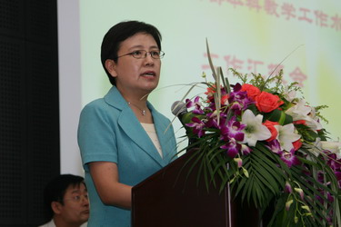 随后,鲁昕副省长致辞。 她首先代表辽宁省人民政府对各位专家的到来表示热烈欢迎。鲁副省长又详细地介绍了近年来辽宁省高等教育所取得的成绩及大连外国语学院的办学基本情况。她说,多年来,大连外国语学院的广大师生员工在院领导的统一领导下,求真务实,开拓进取,艰苦创业,使大外的各项事业焕发出勃勃生机和强大活力,得到了社会各界的广泛认可。此次教育部组织专家组对大外的本科教学工作水平进行评估,这是大外进一步提升办学水平和办学层次的重大机遇,对于大外进一步加强学科内涵建设,提高教学整体质量具有重要意义,同时也会对辽宁省的高等教育起到积极的促进作用。希望各位专家对大连外国语学院的教学改革发展和辽宁省的高等教育多提宝贵意见。大外应该以这次评估为契机,虚心听取专家意见,进一步改善教学条件,全面提升学院的办学实力,争取早日成为在国际上具有广泛影响力的,位居国内同类院校前列的多科型外国语大学,为我国经济社会的全面协调可持续发展和东北老工业基地的振兴作出更大的贡献。 最后她预祝我院本科教学工作水平评估取得圆满成功。
