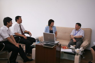 9月18日下午3:30,教育部本科教学工作水平评估专家组组长、上海外国语大学前校长戴炜栋教授走访了国际交流处。国际交流处负责人向专家介绍了国际交流处的工作职责和范围,并以PPT文件形式,就我院2004-2007年以来国际交流情况和开展国际化办学所取得的成果向专家进行了了详细演示和具体汇报。