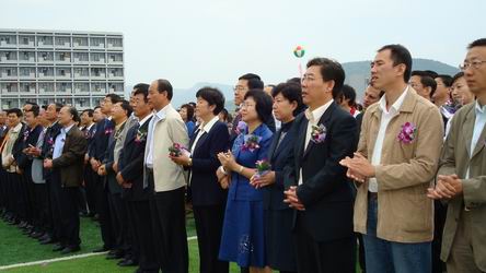 8点40分,庆典在大连市委副书记、市高校工委书记怀忠民的主持下正式开始。 大连市旅顺口区区委书记张荣杰首先代表旅顺口区委、区政府及全区人民致辞。他说,旅顺大学园区的落成不仅加快了周边地区的城市化进程,而且带动了相关产业的快速发展,两校的入驻将进一步提升旅顺的知名度和对外的影响力,为全面建设新旅顺提供强有力的人才支持和智力保障,旅顺口区委、区政府将继续支持和关注两校的建设并尽力为两校的发展创造良好的环境。 我院院长孙玉华作为两校代表在典礼上致辞。她动情地说,四年前这里还是凌乱布局的低矮的农舍,如今气势恢宏的现代化大学城已拔地而起。四年的建设,历尽艰难,充满辛酸。旅顺大学城的落成凝结了省委省政府、市委市政府、区委区政府的正确领导和大力支持,凝结了全体建设者的艰苦奋斗、顽强拼搏,凝结了社会各界的关心、支持和帮助。她表示,办让政府放心、人民满意的大学是学校的光荣使命和不懈追求,我们也将举全校之力,集全校之智,励精图治,勇于创新,为辽宁省经济社会和谐发展和老工业基地振兴做出新的更大的贡献。