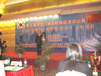 东北三省高校韩语演讲比赛由大连市外事办和韩国驻沈阳总领事馆联合主办,已经成功举办了五届。其间,涌现出了许多优秀的韩语人才。本次演讲比赛中,我院、辽宁大学和黑龙江大学分别获得本次比赛团体组第一、二、三名;来自我院的学生袁晓龙、沈克亿和来自辽宁大学的赵莹分获个人组第一、二、三名。