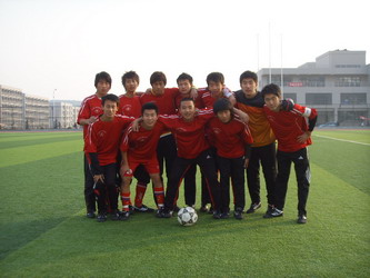 决赛于十一月二十五日在大连交通大学举行,我们的对手是我们同组的大连交通大学队,小组赛中两队以握手言和告终,这次谁胜谁负难以预料。赛前的气氛很紧张,双方的球迷在场边大声为自己的球队欢呼呐喊,在这样热烈的气氛当中,比赛开始了。我院排出了 4231 阵型,以全攻全守对抗对手。这一次双方都熟悉各自的打法了,上来没有试探,直接朝对方球门进行猛攻。狭路相逢勇者胜,我院状态奇佳的刘梓翔同学有一次率先破门,兴奋的他用球衣蒙住头,绕场庆祝。对手并未受此球太多的影响,继续向我们队伍大门发起一浪高过一浪的攻势。中场的时候教练张鹏老师对队员们面授机宜,带着自信的队员们开始了下半场四十五分钟的拼搏。下半场刚开始不久,大连交通大学的如潮水般的攻势 终于获得了回报,并 攻入我队一球,将比分改写为一比一。但是我们并没有受到影响,继续向对手发起攻势,终于在不久以后, 又是由刘梓翔,在禁区里趁乱头球攻破对方阵线,是我们球队再次领先。之后双方互有攻守,场面很是精彩。可惜的是对手在还有一分钟比赛就要结束之际攻入一粒进球,将比分改写,从而将双方带入残酷的点球大战。