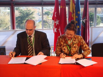 院长孙玉华还和西班牙布尔戈斯国际商学院(简称ISFE)签订了校际合作协议。根据协议,双方将以“2+2”的形式开展企业管理专业和国际旅游专业的合作,学生可获得我院颁发的西班牙语语言、文学专业学士文凭和由ISFE颁发的大学大专文凭。ISFE为我院学生提供企业管理专业硕士课程,毕业后将获得ISFE颁发的硕士文凭。此外,ISFE还向我院提供以下合作项目:为期3个月的暑期西班牙语强化班;为期1年的西班牙语培训班,使学生能参加塞万提斯学院的西班牙语水平测试;对中国西班牙语教师进行教学法培训;为中国在西班牙从事贸易活动的企业员工提供西班牙语培训服务;西班牙教师和专业人员参与的培训计划;商讨在中国建立塞万提斯分院的可能性等。