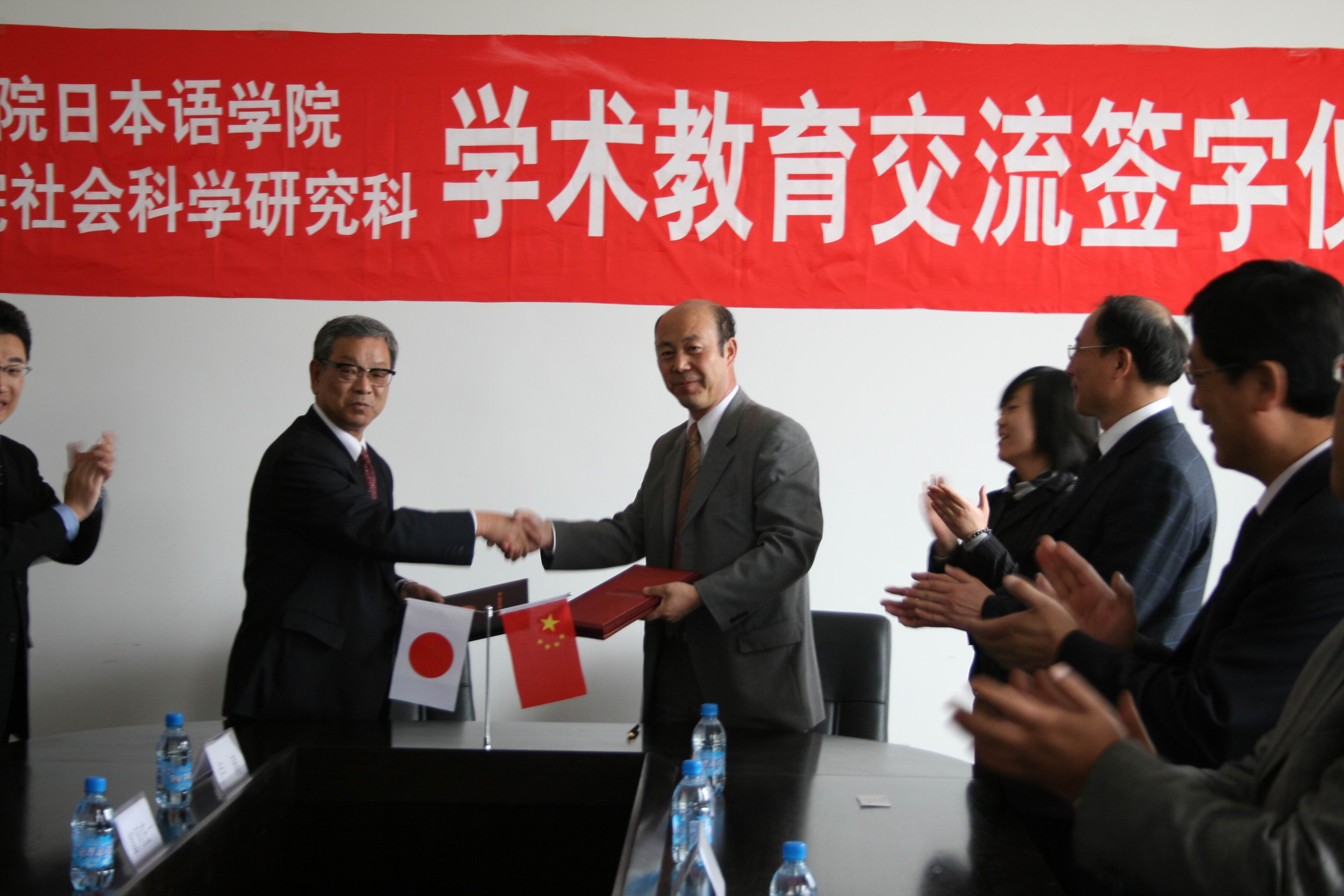 上午10时50分,双方在413会议室举行了大连外国语学院日本语学院与日本广岛大学研究生院社会科学经济研究科学术教育合作交流签字仪式。朱公巍副院长在签字仪式上表示,两单位在很短的时间内达成合作意向,并签署了协议,说明双方在学术教育交流合作、共同培养国际化人才等方面有着共同的理念;协议的签署是两校合作的良好开端,希望双方尽快开展协议内容的合作,把两校的交流合作做好、做大。此次签字仪式的举行,是beat365日本语学院日语专业对外交流合作方面的重大突破,结束了设立日语专业以来长时间没有与日本国立大学进行实质性交流的历史。