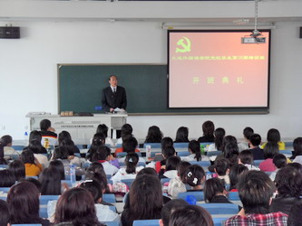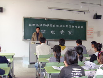 在旅顺校区,党校校长李宝章发表了热情洋溢的致辞,他就举办此次培训班的背景、意义等作了简要阐述,使学员们进一步加深了思想认识,明确了参加此次培训的任务。同时还 希望各位 学员 在以后的学习、工作、生活中,不断加强党性修养和思想建设 , 坚持和发扬党的优良传统和作风,牢记并努力实践党全心全意为人民服务的根本宗旨,要求入党积极分子进一步端正入党动机,努力落实党员标准,以实际行动争取早日加入党组织。应用英语学院2007级学生曹智俐代表新学员发言,她表示要珍惜这来之不易的学习机会,努力提高思想政治素质,以实际行动向合格的党员标准迈进。姚素文副部长从本次培训班的教学目的、教学内容、教学方式等方面介绍了本期党课的教学计划, 培训将采取专题讲座、观看路录像、思想汇报、学生党员现身说法等形式进行 。党委组织员李妍向学员提出了学习要求,要求大家课堂上认真听课、做好笔记,深入思考、认真总结,要通过本次培训学有所获, 为 早日成为一名合格的共产党员奠定比较牢固的思想基础。