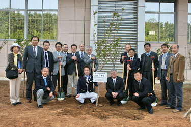 5月16日下午3点,日本岡山丸の内ロ-リタ-クラブ 向我院新校区 树木捐赠仪式正式举行 。张守鹏副院长会见了日方客人,向客人介绍了新校区的绿化情况并代表我院接受了捐赠。在多媒体教学楼的东南侧,张院长同日方客人亲手种下了一株樱花树木并悬挂了纪念牌匾。此次日方向我院共捐赠了31株八重樱树,价值10万日元。这是我院接受的来自国外捐赠 的第一批树木。仪式结束后,日本客人参观了新校区。