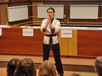 赛时气氛紧张激烈,选手们都是有备而来,不分伯仲。最后,经过加时赛决出冠军。比赛过程中,选手们还表演了精彩的节目:中国武术、民族舞蹈、歌曲、跆拳道等。赢得台下阵阵掌声。